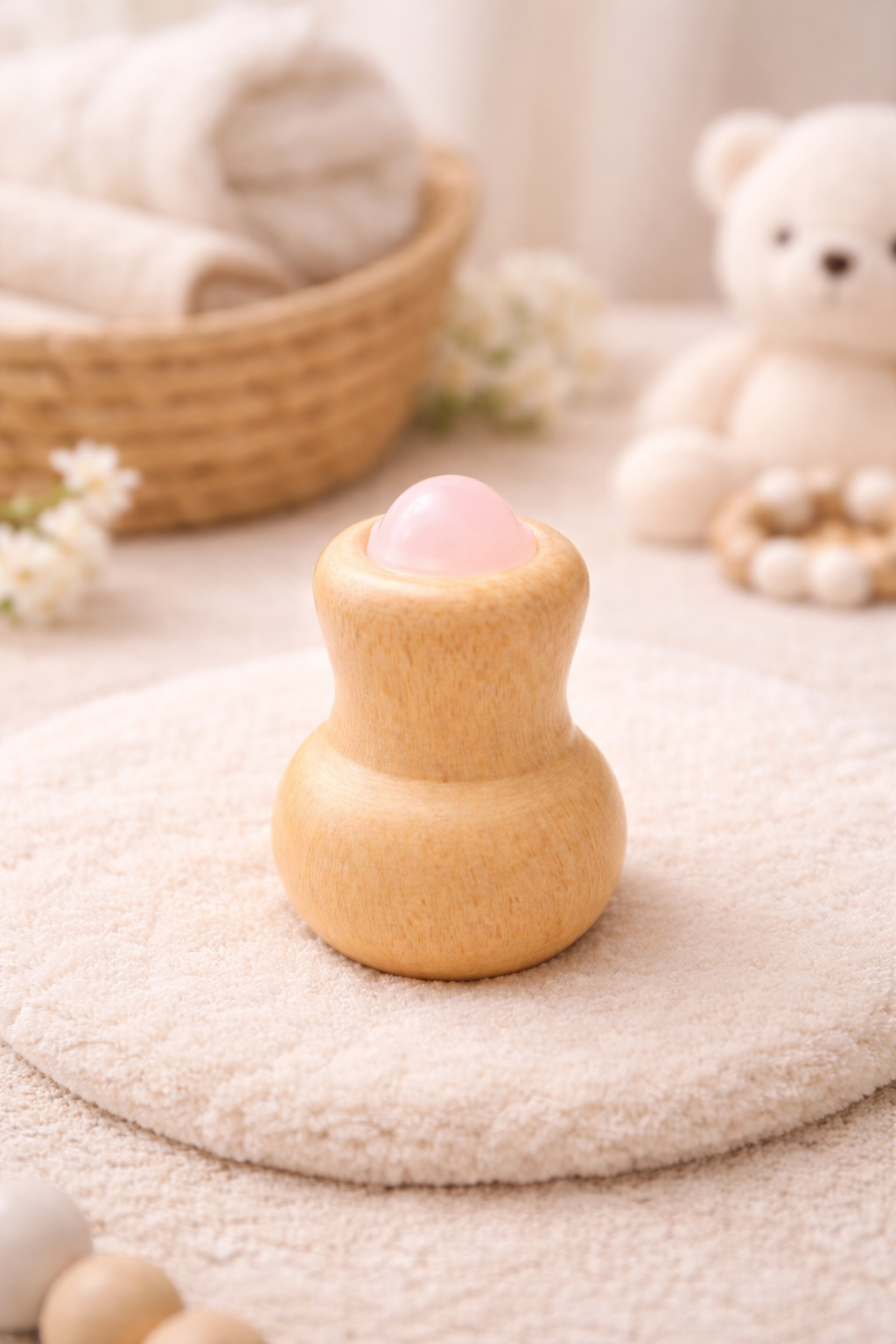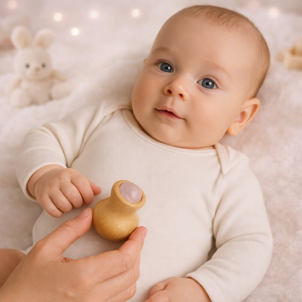 Le jade rose, symbole d’amour et de douceur, favorise une énergie réconfortante et sécurisante. Lorsqu’il est utilisé en massage, il crée un moment apaisant qui renforce le lien émotionnel entre le bébé et le parent.